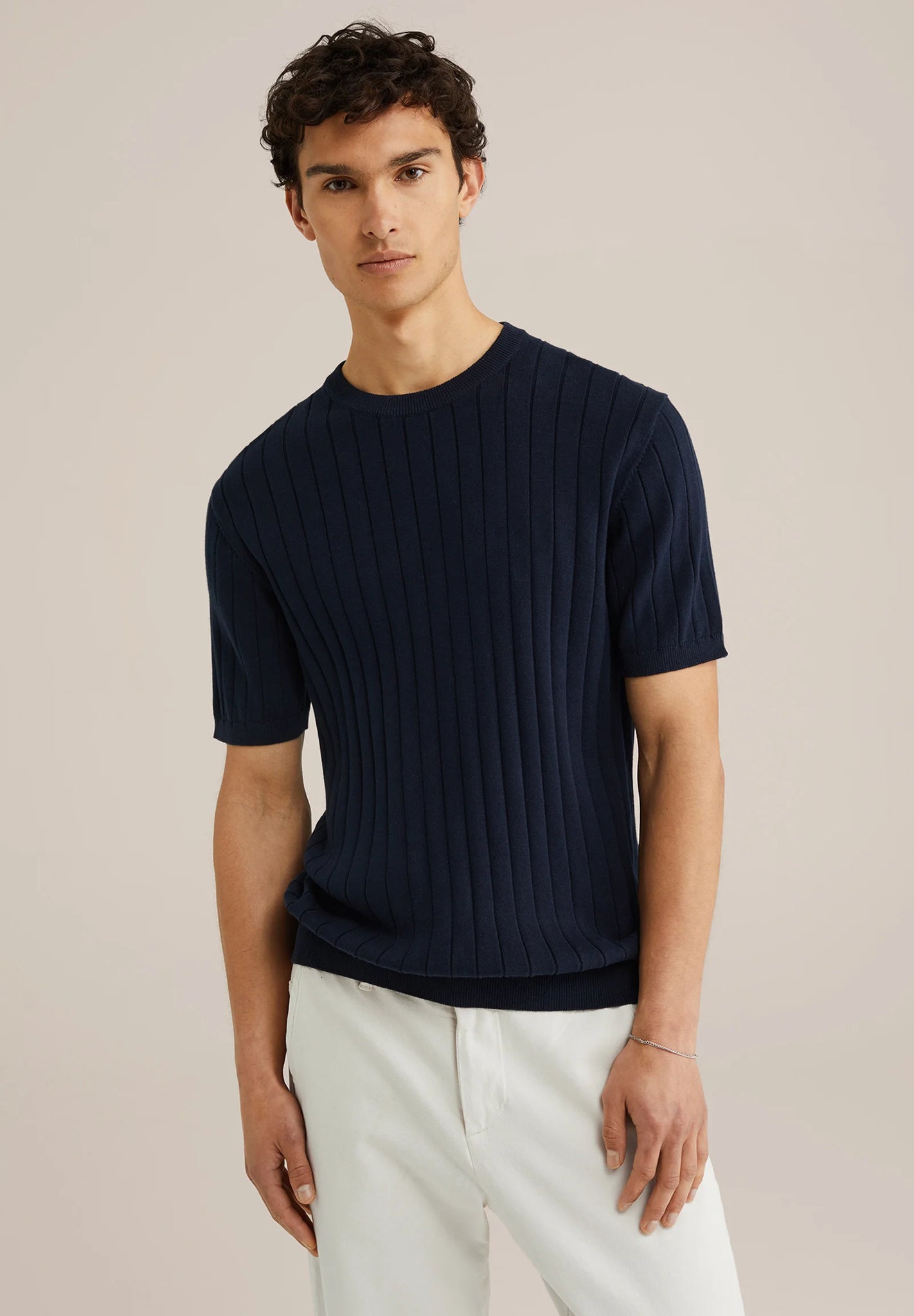 Camiseta masculina confeccionada em 100% algodão, com design listrado e gola redonda clássica. Possui corte reto e caimento normal, garantindo conforto e liberdade de movimento no uso diário. Ideal para compor looks casuais com estilo e leveza.
