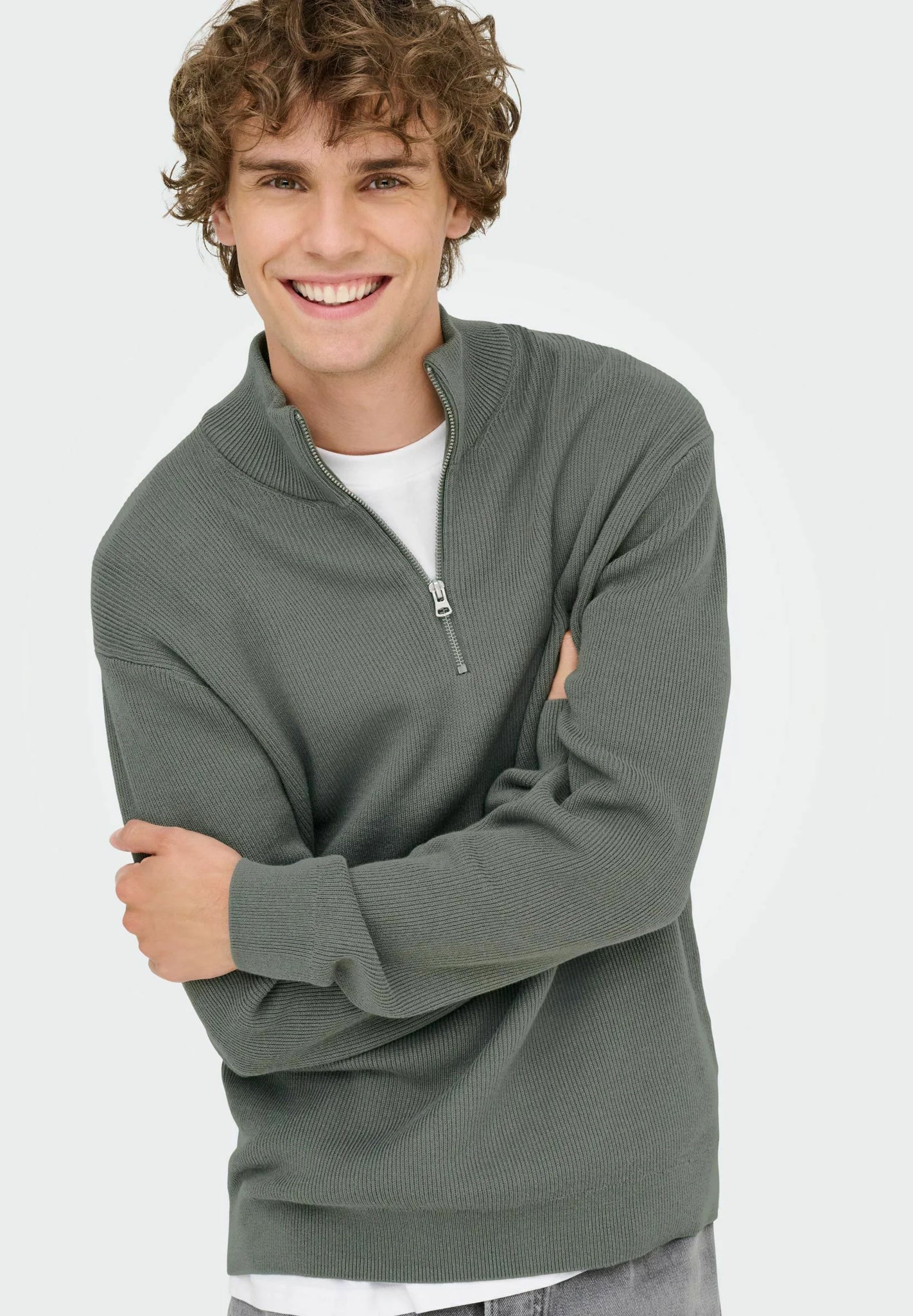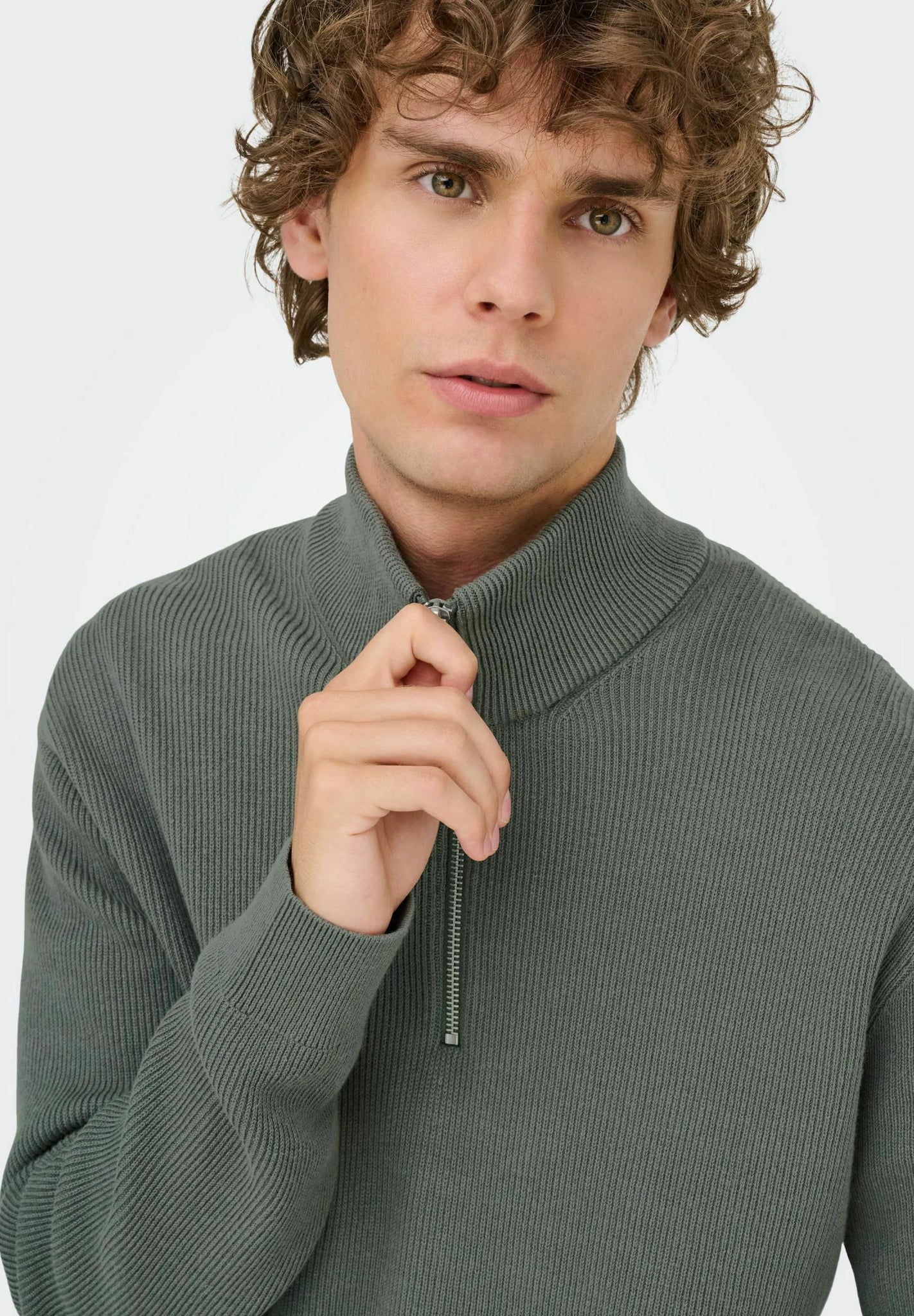 Suéter masculino, modelo comfort, confeccionado em viscose texturizada, com gola alta e zíper, mangas longas, cavas deslocadas, punhos e barra em ribana. Um item versátil, com caimento mais solto e confortável, ideal para quem busca liberdade de movimento sem perder o estilo.